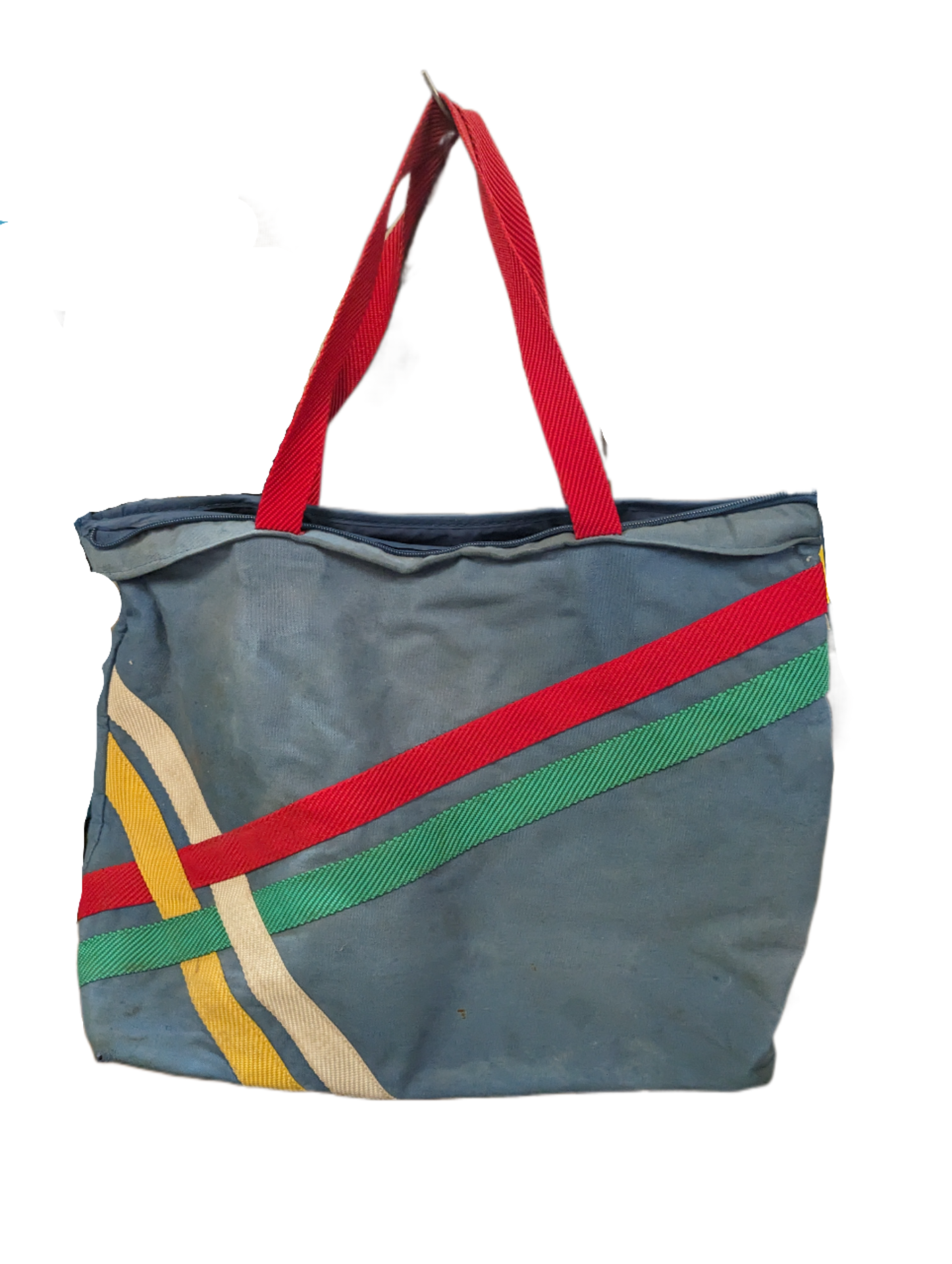 A fun 80’s style tote bag. This bag is a colourful and characterful addition to period and modern sets.