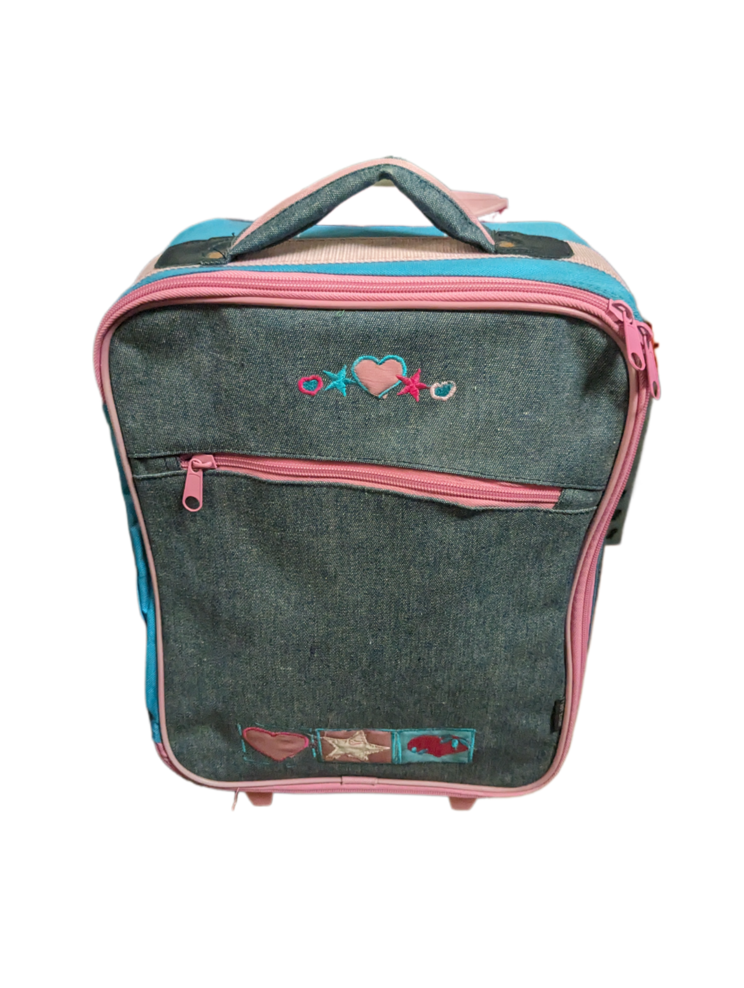 A colourful child’s suitcase. A cute little suitcase for a child that would work well as both an action and background prop.